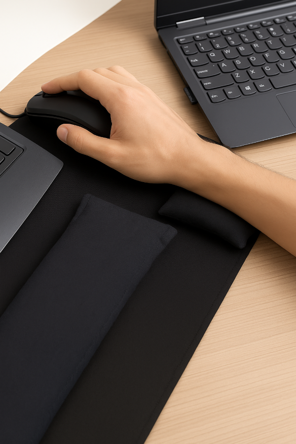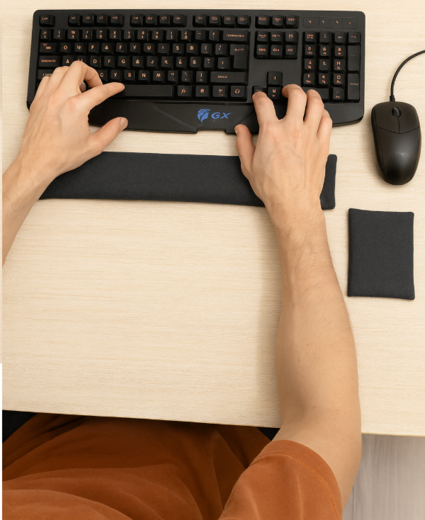 Acompaña toda la extensión del teclado, mantiene la muñeca alineada y reduce la carga sobre el antebrazo.