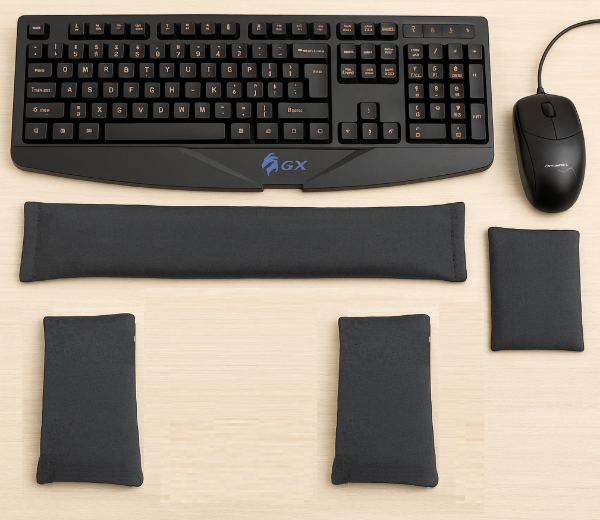 Kit artesanal con relleno de semillas para apoyar codos, muñeca y mouse.